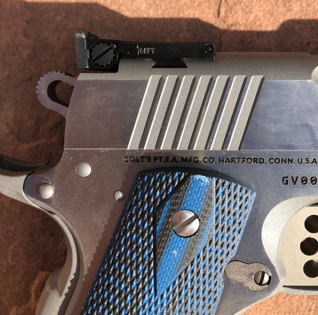 Since then there was nothing else on Colt's Facebook page and none listed on Colt's own website. As of today, there's still nothing mentioned on Colt's own website for this Gold Cup Lite, but I digress. I thought that it was vaporware until my local shop that knows how I like my .38 Super Colts called and said, "Hey, we got a Gold Cup Lite in your favorite caliber, interested?" I replied, "I'll be there in five minutes."