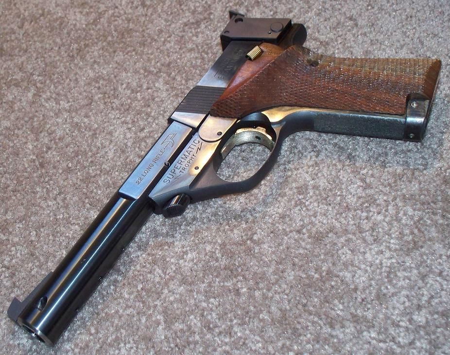 I've had this beauty on hold at my local shop for a few months and finally picked it up last week. This is a beautiful Supermatic Trophy 107 Military. According to the date code (AM), it was built in January of 1969. As many here know, I absolutely love the quality that went into firearms decades ago. Hi-Standard built many different rimfire pistols and revolvers back in the day. While most of the revolvers were of marginal quality, the autos were generally fantastic. The Supermatic Trophy was one of the best they ever built.
