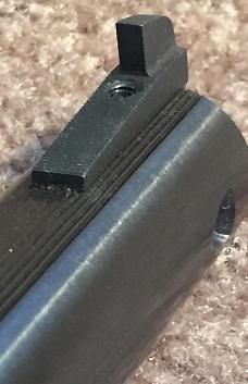The quality of this pistol is so clearly evident the minute you pick it up and feel the weight of 46oz of steel and marvel at the level of workmanship in your hands. The polished bluing looks outstanding to boot. As you can see, the attention to detail is off the charts from the high quality roll marking, to the top slide serrations, to the fine stippling on the front and back strap. The barrel of this pistol is where much of the heft lies. Its 5.5“ of solid steel nearly a full inch in diameter. The bottom of the barrel has three screws for mounting weights, while the front of the barrel has groves for mounting a compensator. The rear sight is mounted on a bridge that is attached to the frame. The slide rides through this bridge, meaning the rear sights to not move with the slide.